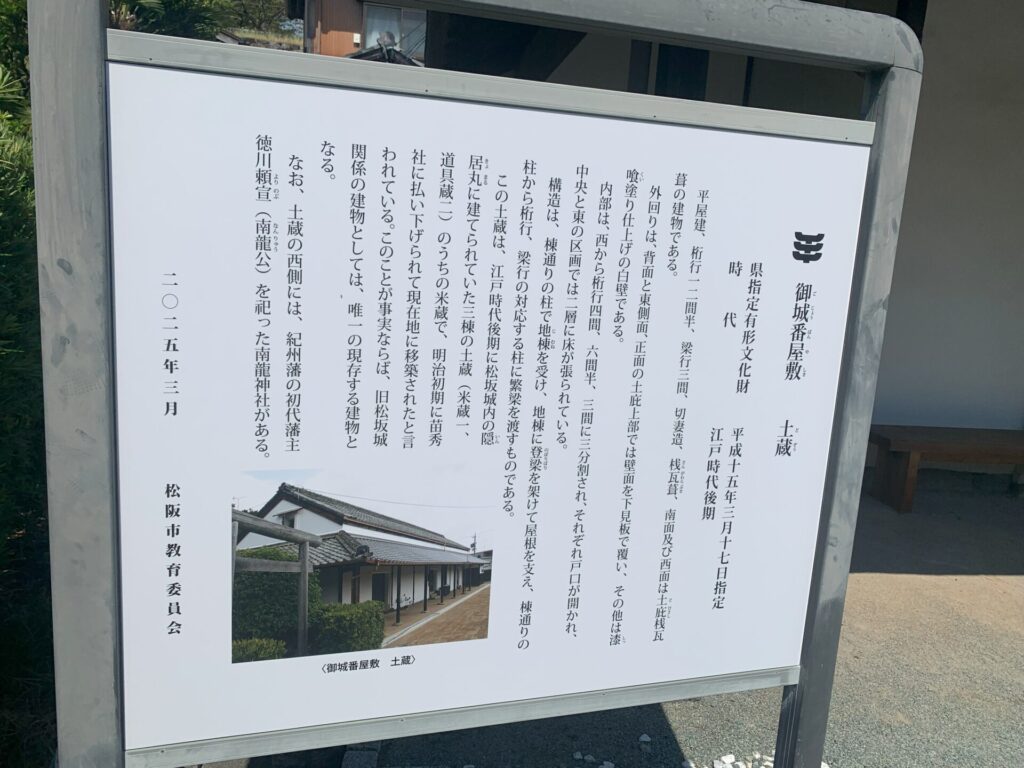 説明書きによれば江戸時代後期に城内の隠居丸に建てられた三棟の土蔵のうちの一つで、明治になり現在地に移築されたようです。