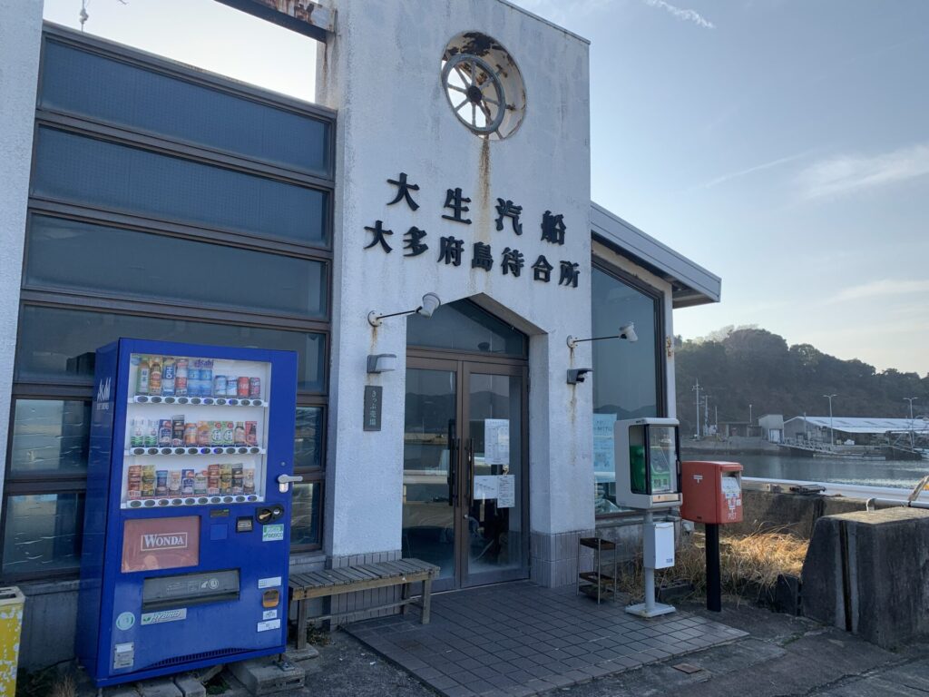 少し時間があるので港の周辺を散策していると診療所があり診察予定日を見ると月に1回程度になっています。また郵便局はなく船の待合所の前にポストがあるだけとのことです。本土に近い島ですが過疎化が進む島の現実を認識させられた気がします。