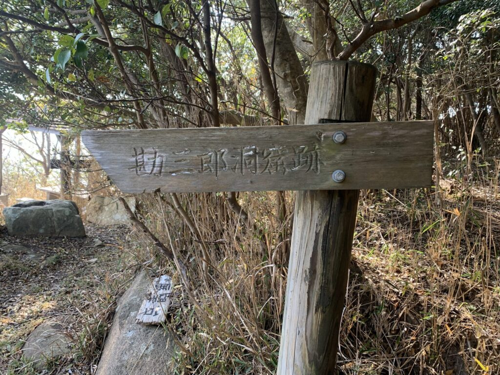 慈雲寺から港の方にもどり勘三郎洞窟跡を目指します。洞窟の中には入れないとのことですが入り口まで行くことにします。