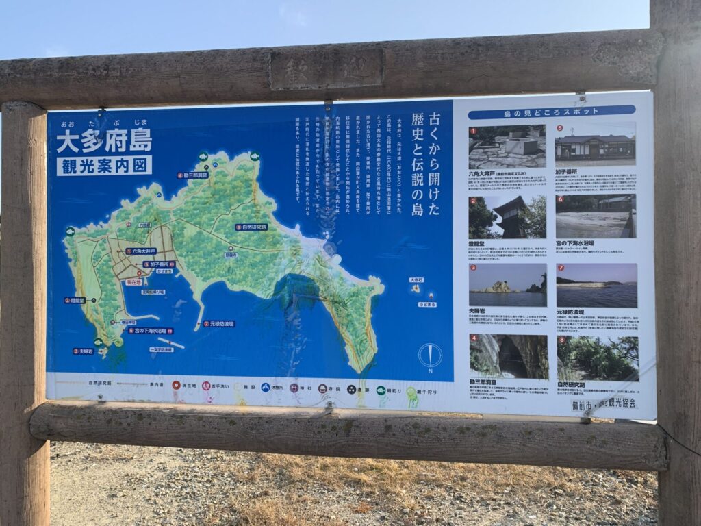 元禄時代に港が開かれ風待ちの港として栄えた大多府島を訪ねました。往時を偲ばせる元禄防波堤や灯籠堂といった史跡を見ることができ島を一周する自然研究路も整備されています。また周辺は牡蠣の養殖が盛んな地域で牡蠣の入ったお好み焼き「日生カキオコ」がご当地グルメとして知られています。歴史を感じられる大多府島を散策し、お腹を空かせて「カキオコ」を食べる旅もいいのではないでしょうか。(各種交通機関、各施設等の情報は公式HP等で最新のものをご確認ください)