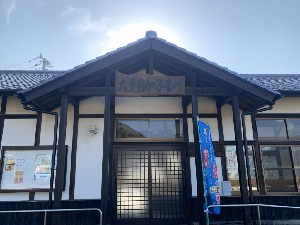 加子とは水夫のことで船を漕いだりその他雑役を行っていましたがその水夫のための番所。平成になり復元されたものですが、中は休憩所になっていて大多府についての説明書きがあります。それによると大多府が開港されたのは1698年、その前年、参勤交代の航海をしていた薩摩藩が暴風雨に遭いこの島に避難し助かったことがきっかけとなったようです。