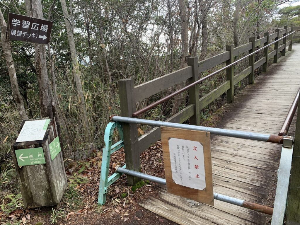 遊歩道が整備され歩きやすいですが西門を展望するデッキが残念ながら立ち入り禁止になっていました。