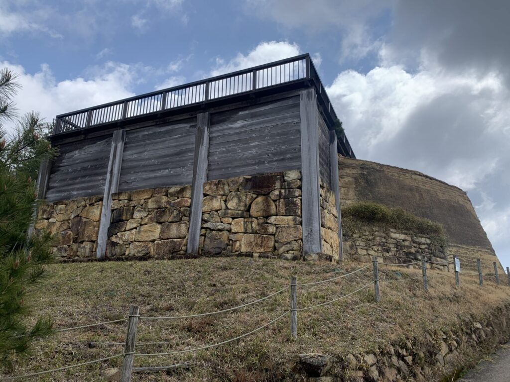 高い石垣が残っているところですが、建物はなかったと考えられているようです。1300年以上前に積まれた石垣の上に立っていると思うとロマンを感じます。