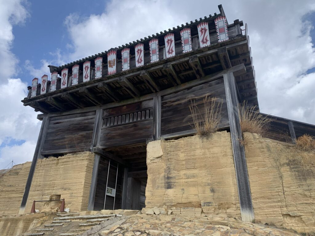 南門についても発掘調査の結果、細部の違いはあるものの規模、構造とも西門と同じくらいであったと考えられているようです。この南門か復元されている西門のどちらかが正門であったのではと考えられているようです。