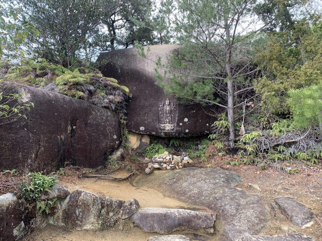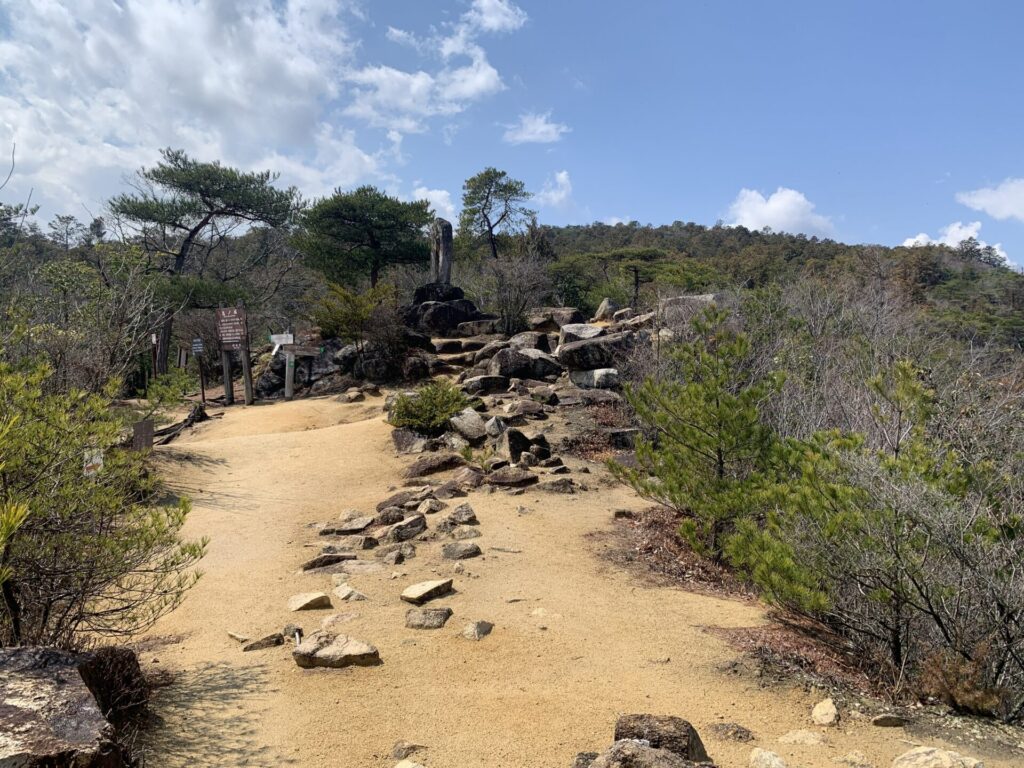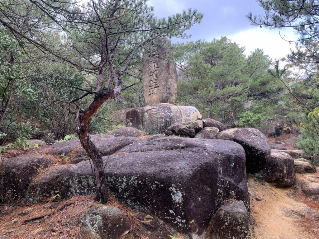 屏風折れから北門跡を目指します。歩き始めると「温羅舊跡(うらきゅうせき)」の碑があります。