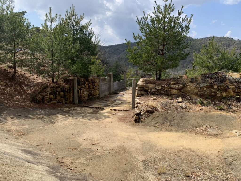雨が止み再び歩き始めるとほどなく東門跡に到着します。