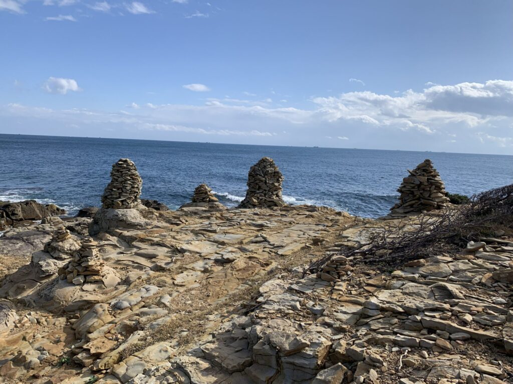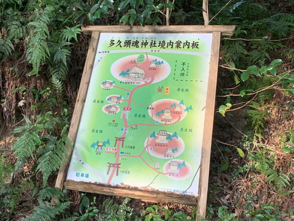 多久頭魂神社は対馬固有の天道信仰の中心とされる神社で神体山「龍良山」を遠くから拝むところ。龍良山には八丁角、裏八丁角という何層にも積み上げられた石積みの塔があり神宿る聖地とされ「オソロシドコロ」と言われています。「オソロシドコロ」とは穏やかではありませんがそれだけ神聖な場所とする意味ではないかと想像します。そしてその龍良山を拝む場所である多久頭魂神社の境内には「不入坪(いらぬつぼ)」といわれる禁足地があり、こちらも併せて「オソロシドコロ」と言われているようです。