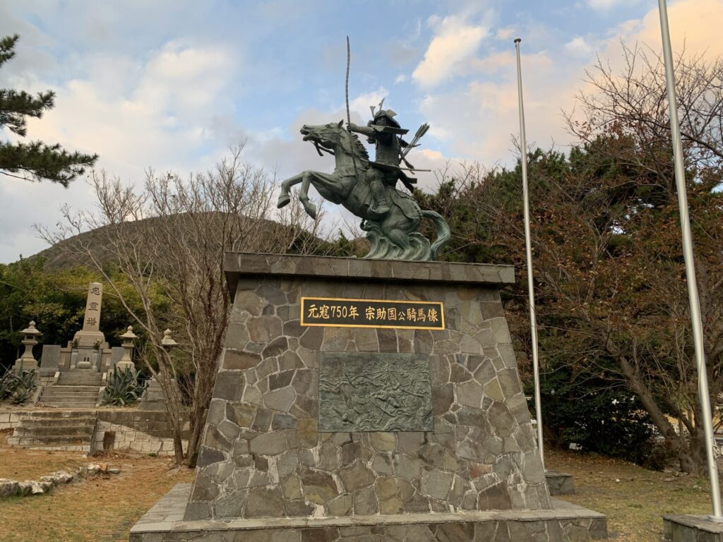 対馬には国境の島ゆえの悲しい歴史があり代表的なものに鎌倉時代の元寇があります。歴史の授業で習われたと思いますが中国からヨーロッパにかけて巨大帝国を築いた元に二度にわたって攻められ対馬は甚大な被害を受けました。一度目の文永の役(1274年)では守護代の宗助国が元の大軍に対しわずか80余騎で勇敢に戦いましたが討ち死してしまいます。この小茂田濱神社にはその宗助国と戦死した家臣たちが祀られています。