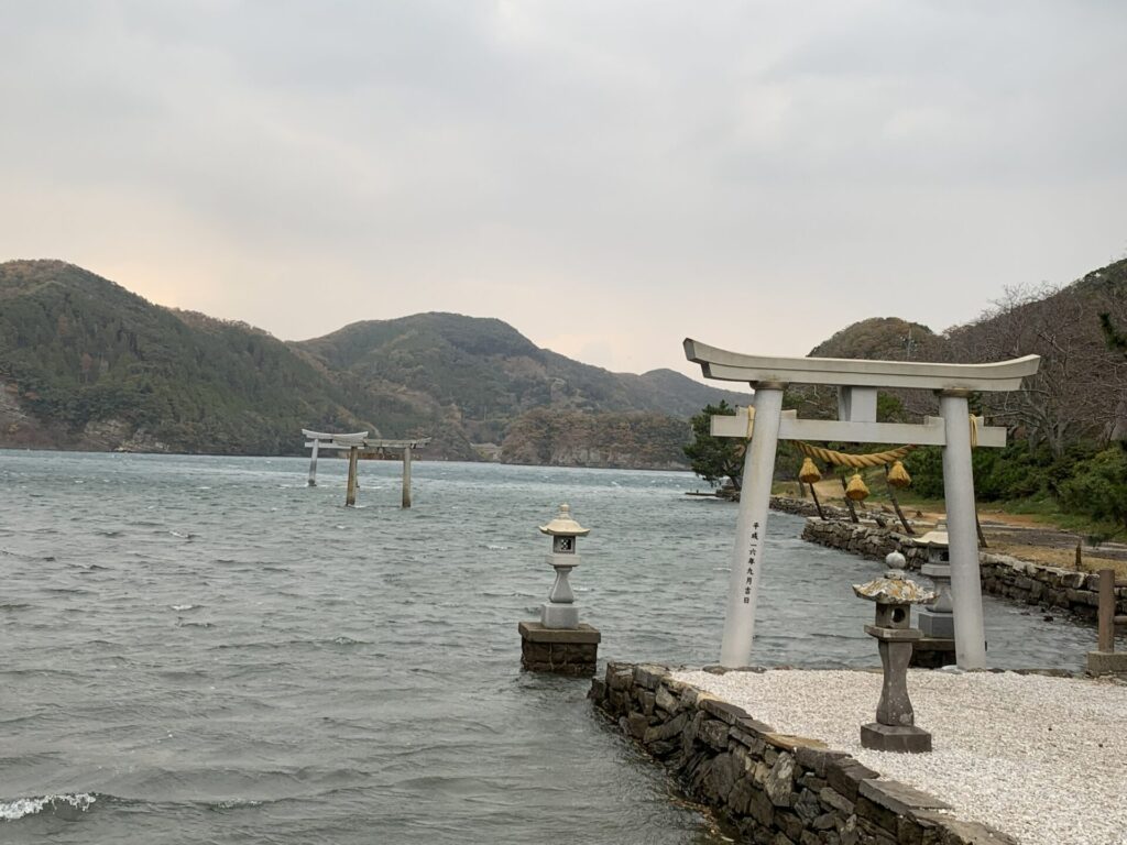 烏帽子岳展望所から昨日参拝した和多都美神社を再度訪ねます。