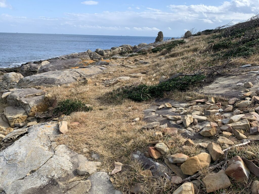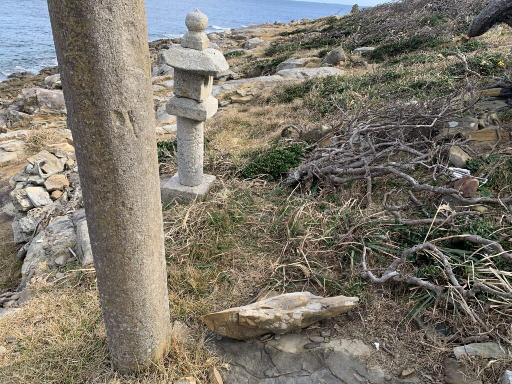 近くに豊砲台跡があり訪ねようとしましたが砲台跡への道が通行止めとなっていました。自動車だけかと思い確認しましたが歩行者も通行止め、解除の情報もないようなので已む無く残念、五根緒の石塔を目指します。こちらは案内標識等はなくなかなかたどり着けずたまたま通りかかった地元の方に教えていただきたどり着けました。