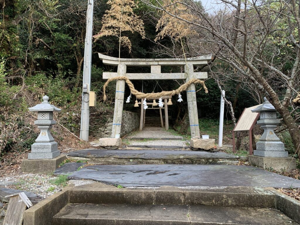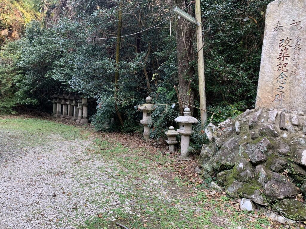 走っている間に期待通り雨が止みましたが豆酘崎に通じる道路が通行止めになっていました。已む無く残念し多久頭魂神社を訪ねます。