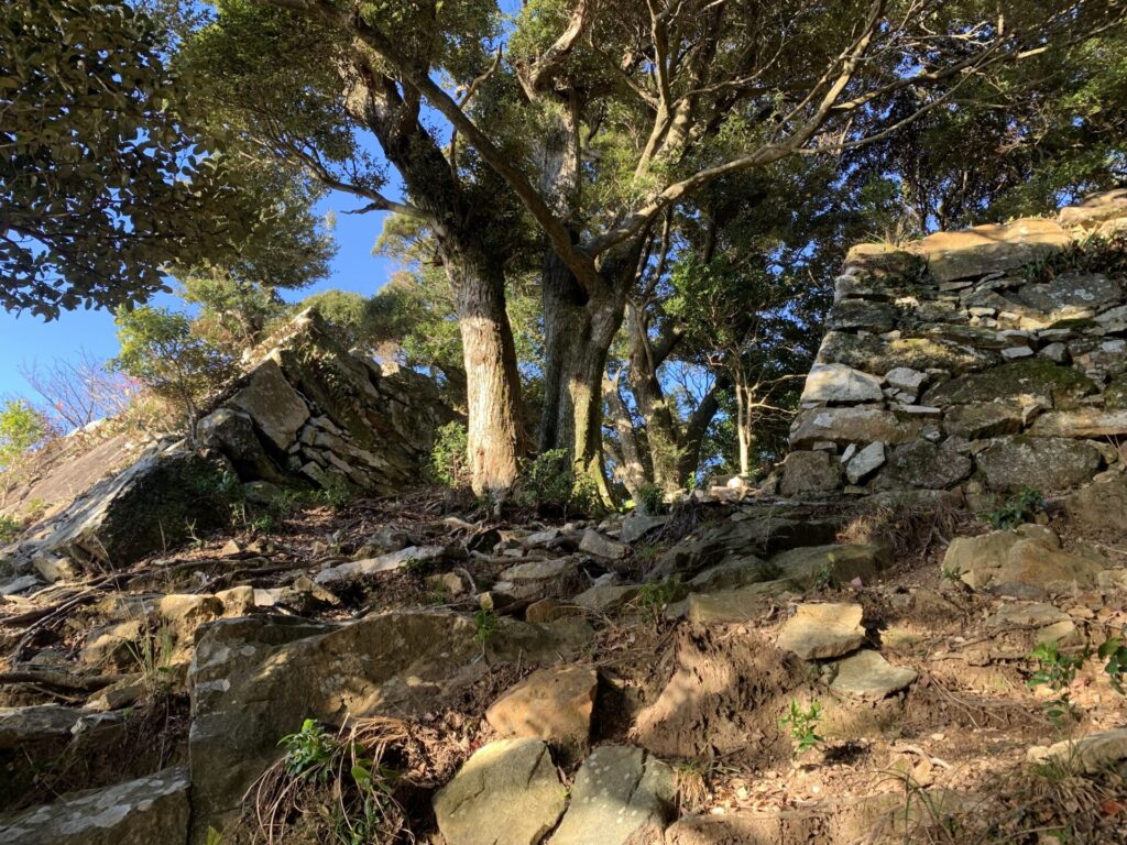 一ノ丸の南東側(二ノ丸に繋がる方)は石垣が二重になっていて虎口が二つあります。その二つの虎口は互い違いになっていて敵が直進できないような構造になっています。