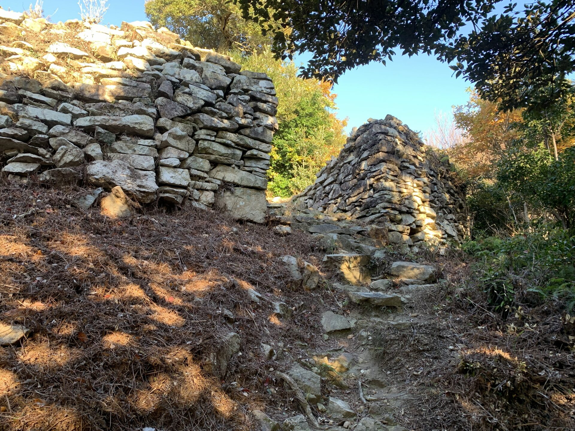 一ノ丸も大きな岩盤が露出していたり大きな石があったりで平らな場所が少ない気はします。そのあたりは清水山城のミステリーとされているところのようで、戦いのための城というよりは天下人秀吉の権威を示すための城であったとの考えもあるようです。