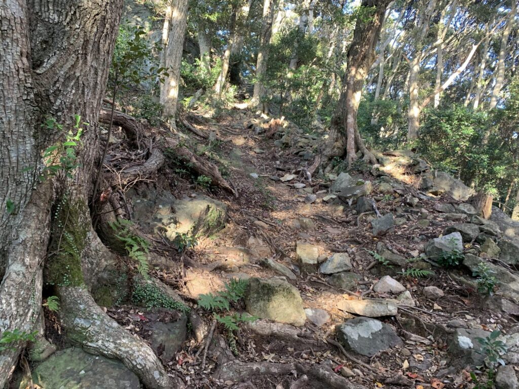 一ノ丸から来た道を石を踏まないように注意しながら慎重に下っていきます。登山口から往復2時間程度の行程といったところでしょうか。