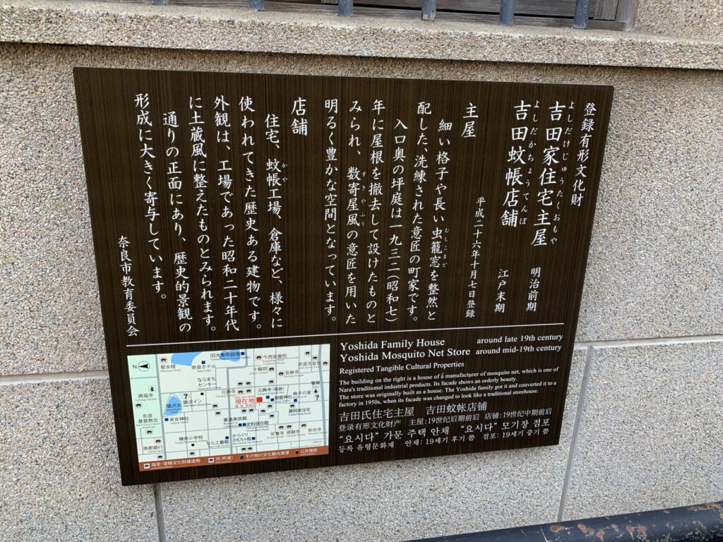 元興寺の南側の通りに出ると吉田家住宅主屋、吉田蚊帳店舗があります。