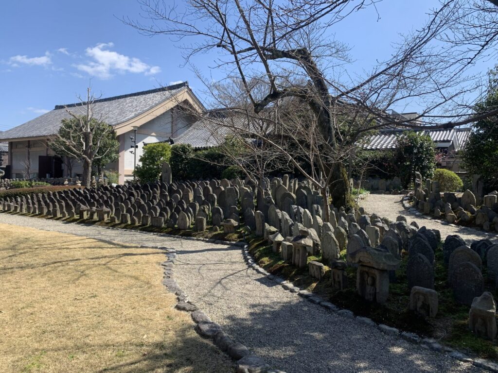 境内には講堂の礎石と考えられる石や鎌倉時代から江戸時代にかけて作られたたくさんの石造塔や石造仏があります。