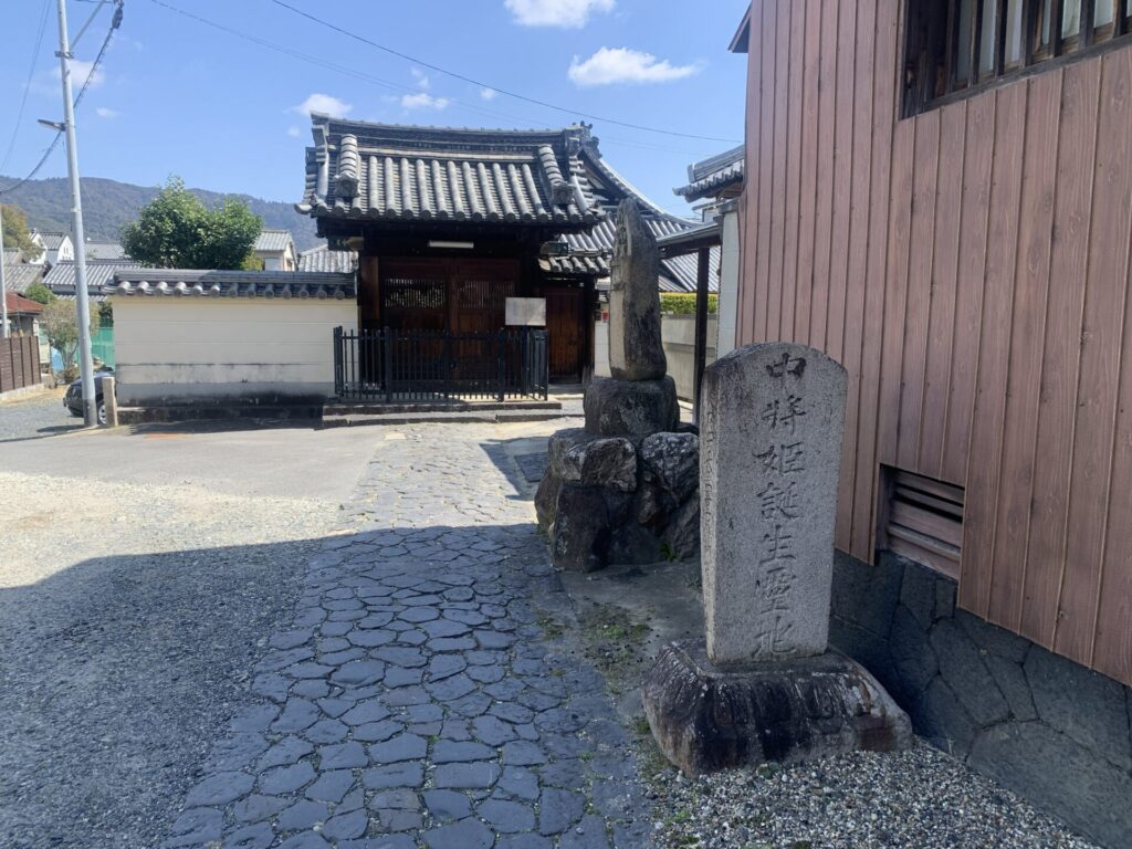 中将姫の伝説が残る寺で門前に三猿を織り込んだ碑が立っています。残念ながら何の碑か説明もなく文字も読めませんが色んなことを想像するのも面白いです。