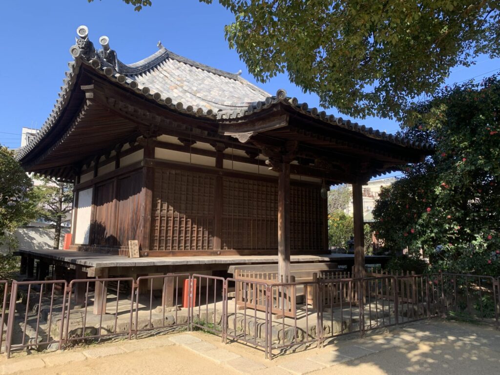 最後に少し離れますが伝香寺という寺を訪ねます。からくりおもちゃ館から西にしばらく歩くとやすらぎの道という広い道に出ます。やすらぎの道を北に向かって5分ほど歩くと到着します。