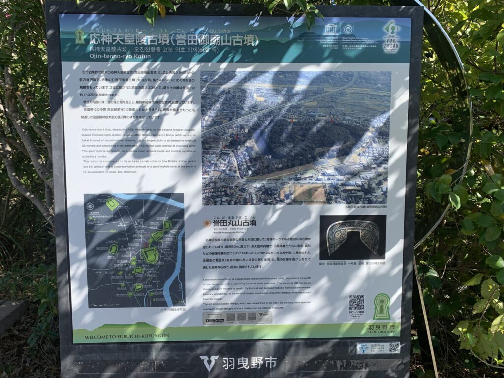 応神天皇の皇后仲姫命の墓とされているようですが発掘調査の結果は応神天皇陵より前に作られているようで応神天皇の父仲哀天皇の墓とする考えもあるようです。そうなると先ほど見た仲哀天皇陵古墳は誰の墓なのか、と疑問が生じますが古墳は学術的に被葬者が確定していないものがほとんどだそうです。文字が普及していない時代にこれだけの大工事を成し遂げた古代の人々の知恵と技術には感心させられます。