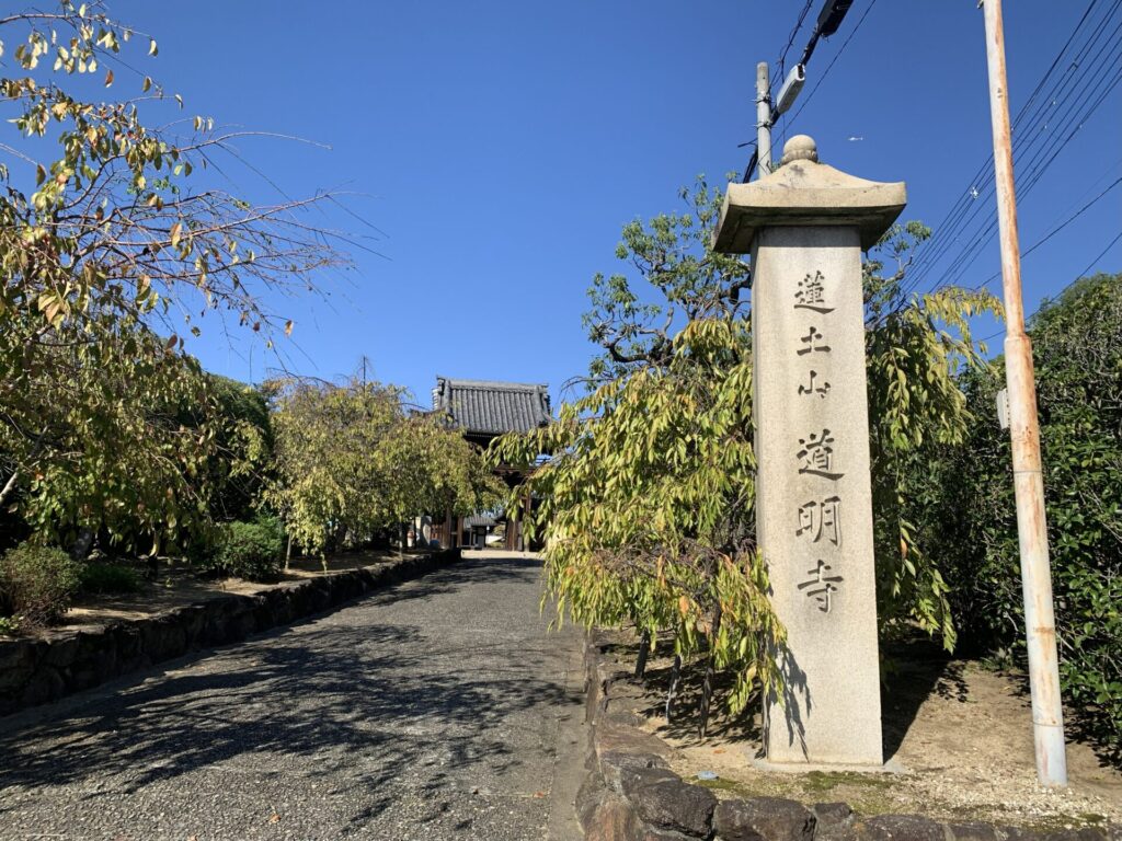 仲姫命陵古墳の北東すぐのところに土師ノ里駅があり駅から東に少し歩くと東高野街道が通っています。この東高野街道を南に歩いて古市駅に向かいます。歩き始めるとすぐに道明寺、道明寺天満宮があります。