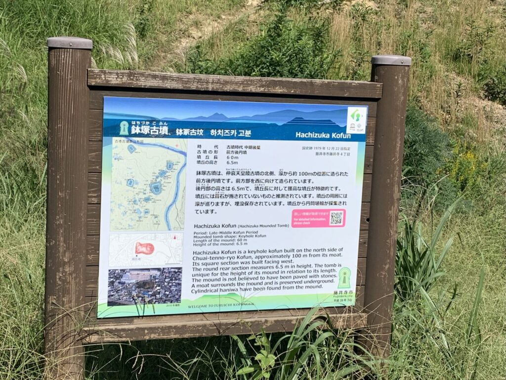 鉢塚古墳で近くにある仲哀天皇陵古墳の付属墳と考えられているようです。付属墳とは主墳に埋葬された人物の親族や臣下が埋葬されていると考えられています。