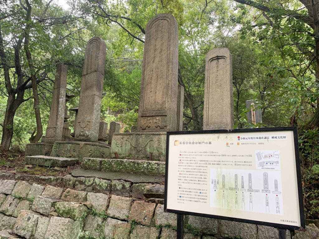 自治が認められた塩飽諸島で政務を行う年寄役を務めた吉田彦右衛門の墓。本島にはこのような年寄役を務めた人の墓が数ヶ所あります。