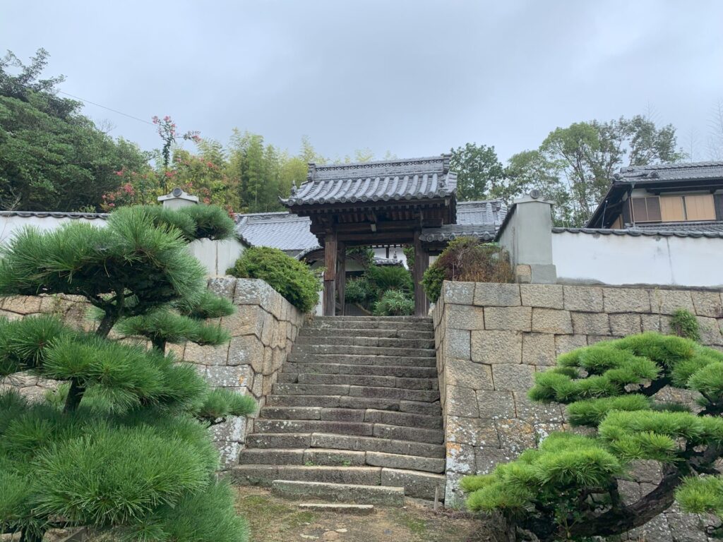 本島霊場一番札所とあります。本島にはこのような霊場が三十三ヶ所ありますが、秀吉の朝鮮出兵の際水軍として参加した塩飽の人々が戦没者の霊を弔うために行ったのが始まりとされています。長徳寺から古いまち並みが残る笠島集落を目指します。集落の手前に浄土宗開祖の法然上人ゆかりの専称寺があり前に年寄吉田彦右衛門の墓があります。