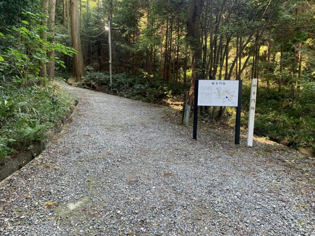掛川駅から25分程度で土方バス停に到着、バスを降り北口(搦手門跡)を目指します。ところどころに案内が設置されています。