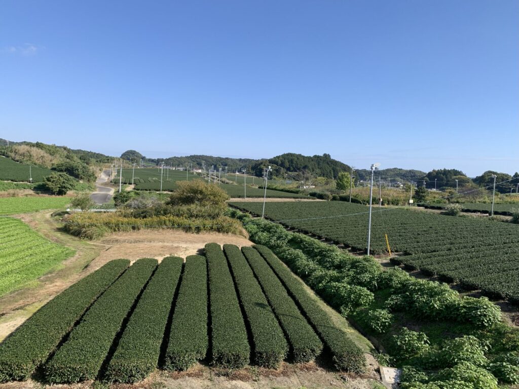 高天神城跡を後にしお茶どころらしく茶畑が広がる中を土方バス停を目指して歩きます。