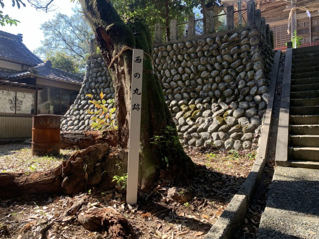 建物の跡がありますが戦前、軍医をされていた方が故郷を偲んで模擬天守を建てた跡のようです。御前曲輪跡からの眺めは素晴らしいですが、戦になった時籠城していた兵士たちは眼下に迫る敵をどのような想いで見ていたのでしょうか。