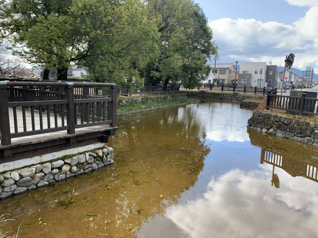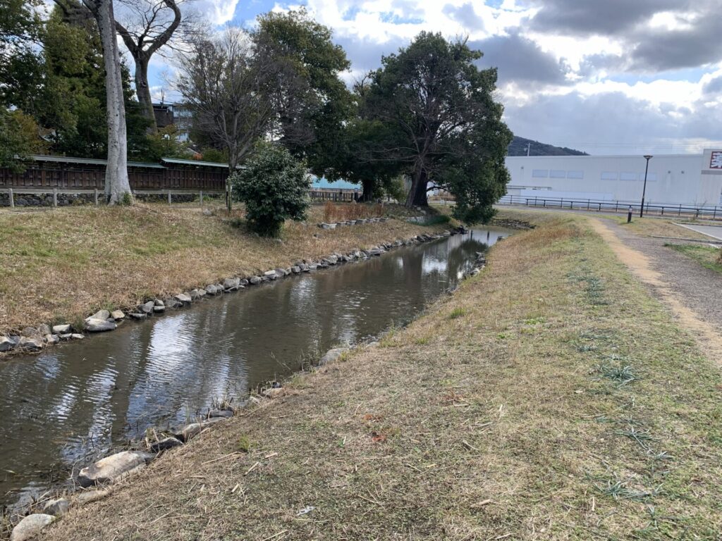 今井町には防衛と水利を兼ね備えた環濠が巡らされていました。発掘調査が進む中でその一部が復元されたようです。
